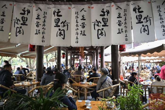 春分前后,成都的茶馆换上了今春的第一抹新绿。3月19日,人民公园鹤鸣茶社人声鼎沸,慕“鲜”而来的茶客和游客络绎不绝。