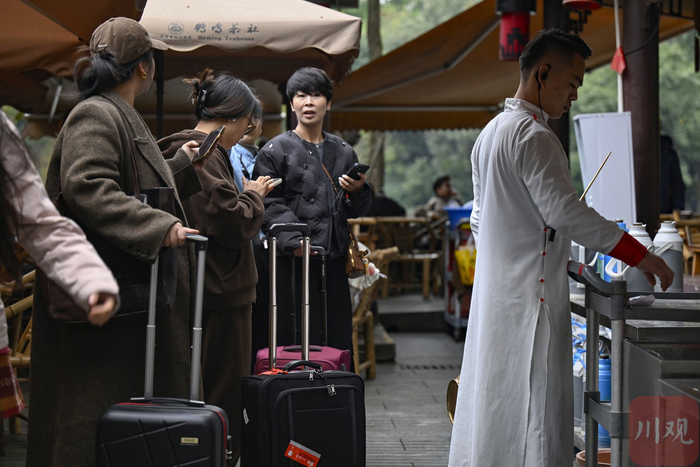 不少外地游客格外显眼——他们拖着行李箱就赶来,只为尝一口这四川春天的第一杯新茶。
