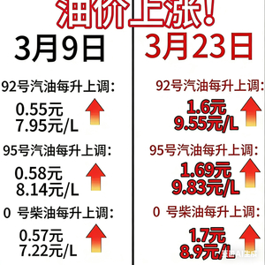 油价狂飙,车主钱包再遭暴击!2026年3月23日晚,国内成品油市场将迎来年内最疯狂的油价调整!据权威机构测算,本轮油价涨幅突破1.60元/升,95号汽油价格将直逼10元大关,最高达9.89元/升,创下国内油价今年历史新纪录。
