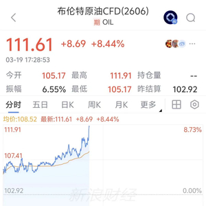 布伦特原油直线拉涨,站上110美元/桶上方,黄金、白银、比特币,集体大跌
