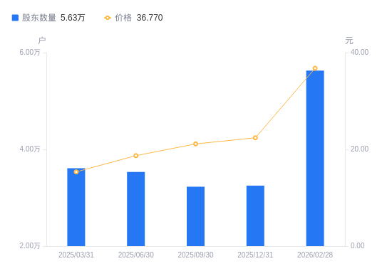 3月19日消息,数据显示,截至2025年12月31日,川金诺A股股东总户数为3.25万户,较上期(2025年9月30日)增加209户,增幅0.65%。公司最新A股总股本为2.75亿股,其中流通A股2.17亿股,户均持有流通A股数量为6688.45股,较上期减少43.29股,降幅0.64%;户均持流通A股市值14.98万元,较上期增加7512.67元,增幅5.28%。