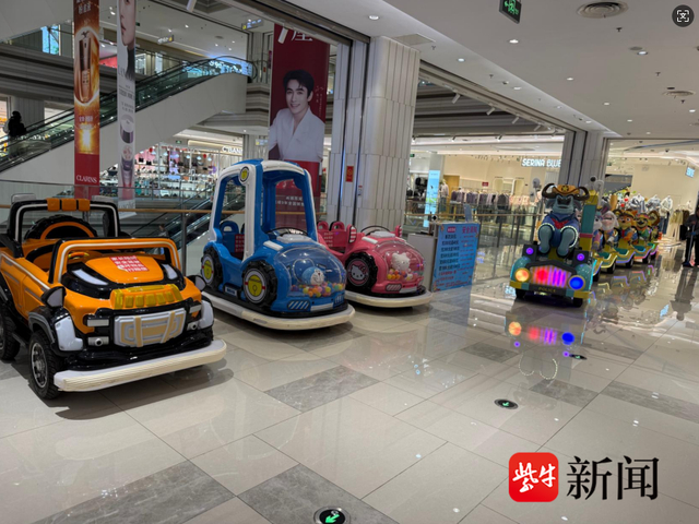 2月27日,记者前往金鹰购物中心走访后发现,商场二楼斐乐门店外确实有一根承重柱,门店与承重柱间的距离为2米多,而涉事游乐车宽度超1米。游乐车前车盖上贴了“家长陪同、安全驾驶、撞坏物品、自行赔偿”的标识,但周边并未设置任何物理隔离带或专用行驶区域标识。