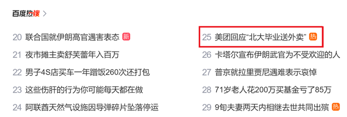 针对此次“北大毕业送外卖”视频事件,美团在发文中呼吁,对于利用高学历标签博取流量的行为,切记保持理性,审慎判断。