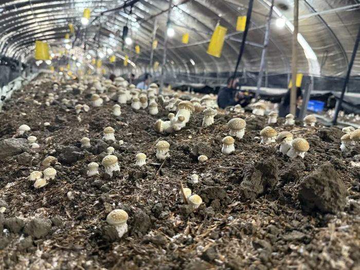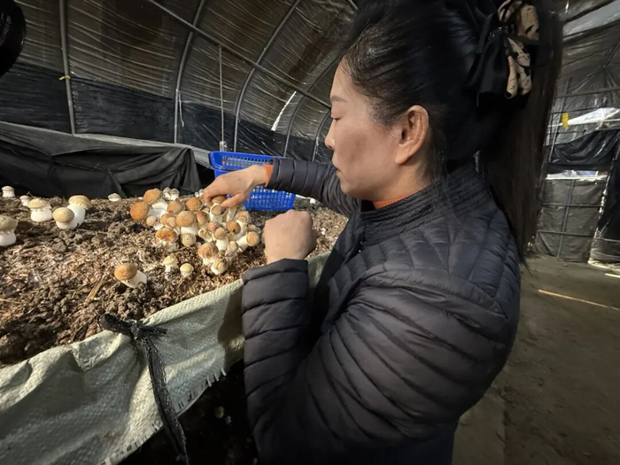 今年赤松茸的好品质,也得益于阎良的不断改进。“去年播种的时候,我们在栽培基质配比上进行了调整,选用木屑、玉米芯、棉子壳等天然农林废弃物作为原料,打造绿色无污染的生长基底。同时,基地精准把控生长环境,将棚内温度稳定在15℃到25℃、湿度维持在70%到80%,为赤松茸生长提供适宜条件。”阎良表示。