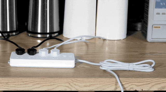 如果同时接入多个大功率电器,比如将电热水壶(1500瓦)和微波炉(1000瓦)插在同一个10安(A)的插线板上,总功率就会超过插线板2200瓦的承载极限,若同时开启就会导致过热甚至起火。