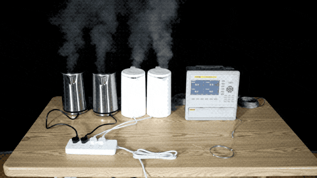当水壶开始工作后,用测温仪实时监测电线的温度。随着时间的推移,电流通过后,电线冒起缕缕青烟。