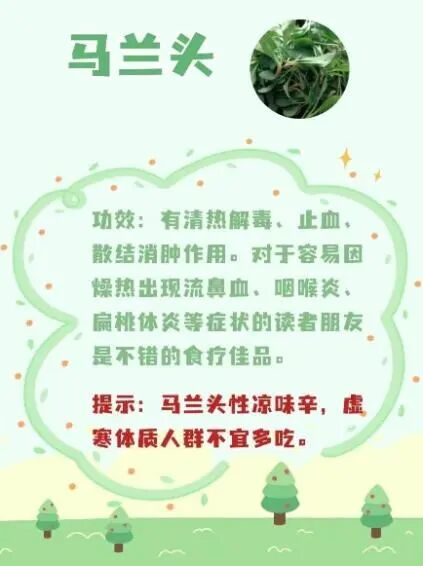 √ 野菜虽好但不宜多食,尝尝鲜即可,因为野菜大多性寒凉,脾胃虚弱者食用极易引起消化不良,甚至引起腹痛、腹泻等症状。