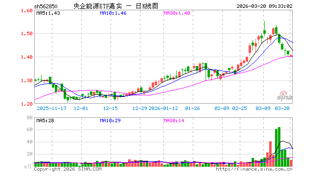 3月20日,央企能源ETF嘉实(562850)开盘跌0.71%,报1.400元。央企能源ETF嘉实(562850)重仓股方面,长江电力开盘涨0.00%,中国铝业跌1.35%,国电南瑞涨0.61%,中国核电跌0.34%,云铝股份跌0.03%,三峡能源涨0.00%,中国石油跌3.85%,中国海油跌4.47%,国电电力涨0.20%,中国电建跌0.50%。