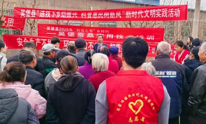 3月17日,吴堡县2026年“科技之春”乡村行活动走进寇家塬镇,将蚕桑实用技术培训和移风易俗宣讲课堂搬到了田间地头,为蚕农们进行技术“充电”。