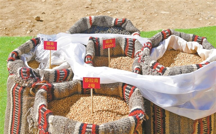 图为墨竹工卡县唐加乡春耕春播仪式上展示的各类青稞种子。记者 索朗旺久 摄