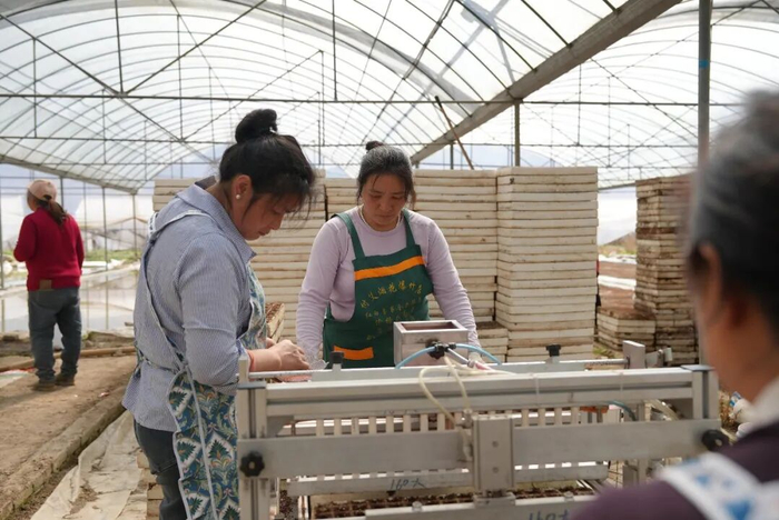 为了提高育苗效率和质量,基地不仅引入了播种机,还特邀农技专家现场指导。“我们提供的播种机,比人工播种效率更高、更均匀,同时我们会现场给种植户分享育苗经验,帮大家解决实际问题。”宏和果蔬农民专业合作社农技人员李飞说。