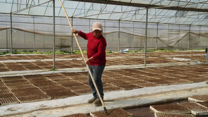 据基地负责人庞泽勤介绍,早在正月初,基地就启动了春耕准备工作:“我们正月初几就开始打扫棚子,给棚体、育苗盘全面消毒,消毒完成后就正式播种,就是为了赶在农时前育出好苗。”