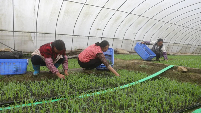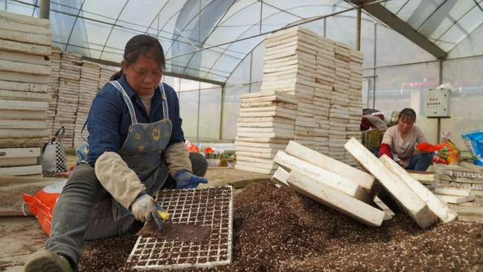 “现在正是春耕关键期,我们每天都在棚里忙着育苗,一点都不敢耽误!”在浞水镇长江社区辣椒育苗基地,工人们分工明确,覆土、搬运、浇水,每一道工序都有条不紊。