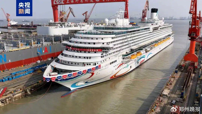 第二艘国产大型邮轮“爱达·花城号”顺利出坞