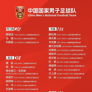 中国男足26人集训名单如下: