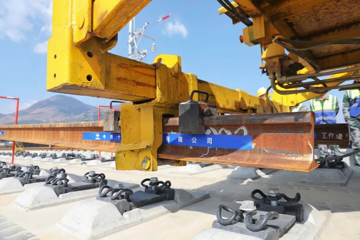 随着首对500米长钢轨平稳铺设