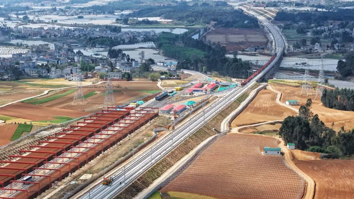 随着铺轨施工的正式启动,渝昆高铁盐津南至昆明南段建设进入攻坚冲刺阶段。目前,路基、桥梁工程已圆满收官,新建站房也开始进行装修收尾。