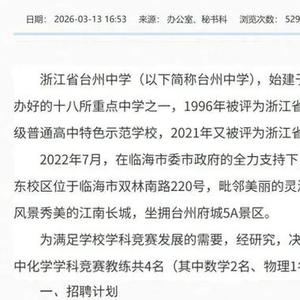 浙江一中学招聘竞赛教练,最高200万元年薪,学校:已有人致电咨询