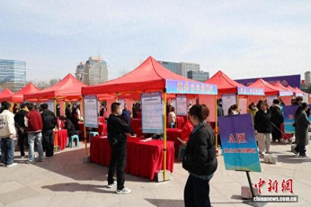3月20日,青海省西宁市举办2026年春风行动暨就业援助季专场招聘会。124家企业提供物流运输、医药卫生、绿色能源等24个行业的岗位,吸引就业者前来应聘。图为招聘会现场。中新社记者 马铭言 摄