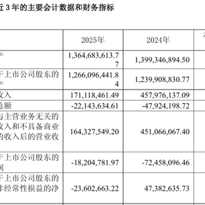 公告称,根据《股票上市规则》第9.3.2条第一款第(一)项规定:“(一)最近一个会计年度经审计的利润总额、净利润或者扣除非经常性损益后的净利润孰低者为负值且营业收入低于3亿元,或追溯重述后最近一个会计年度利润总额、净利润或者扣除非经常性损益后的净利润孰低者为负值且营业收入低于3亿元”,公司股票在2025年度报告披露后将被实施退市风险警示(在公司股票简称前加“*ST”)。
