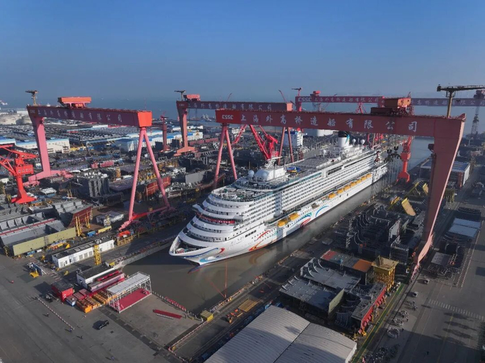 3月20日,第二艘国产大型邮轮爱达·花城号在上海出坞,标志着项目正式转入码头建造调试阶段。详情(来源:人民日报)