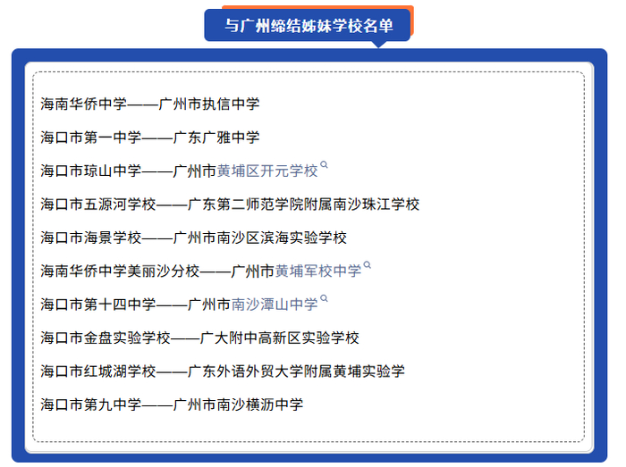海口与广州10对学校日前在广州正式签约,缔结为姊妹学校,标志着海口与广州教育协同发展迈入实质性阶段。详情(来源:海口日报)