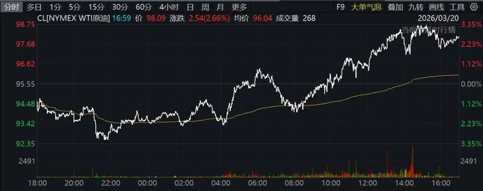 3月20日国际油价拉升,截至当天收盘,纽约商品交易所4月交货的轻质原油期货价格涨超2%;5月交货的伦敦布伦特原油期货价格涨超3%。