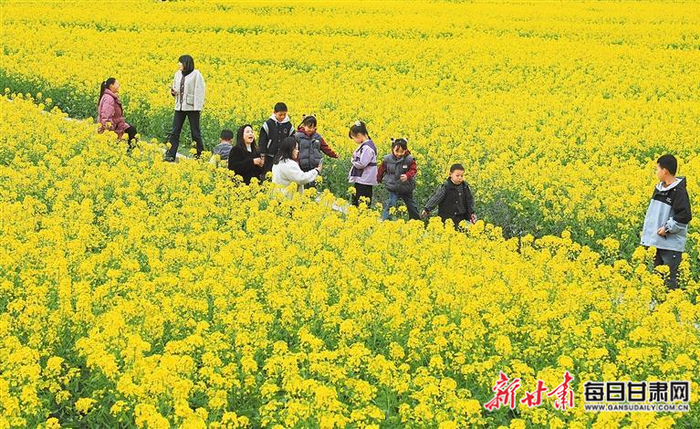 陇南市武都区坪垭藏族乡境内的百亩油菜花竞相绽放。新甘肃·甘肃日报通讯员 李旭春