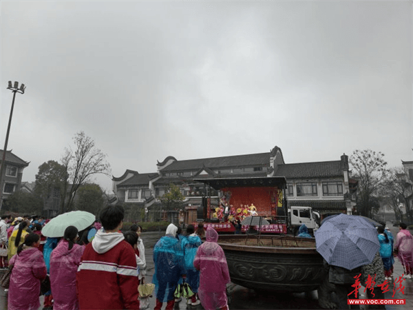 活动尾声,同学们在古镇观看了桃源县汉剧艺术团“送戏下乡”的节日展演。同学们在跌宕的故事情节、优美的唱腔与细腻的表演中,近距离感受戏剧艺术的独特韵味,理解戏剧中的情感张力和道德抉择,领略传统艺术与社会主义核心价值观交融碰撞的文化魅力。