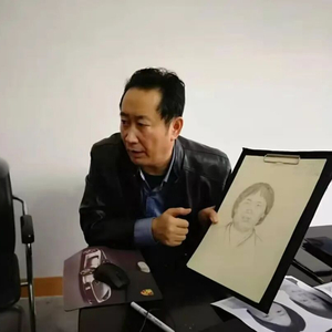 ▲林宇辉为“梅姨”画像时。 受访者供图