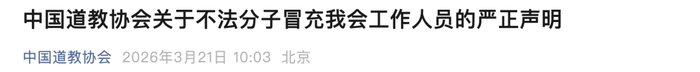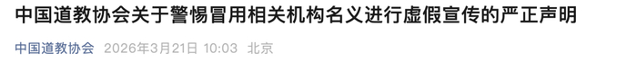 中国道教协会微信公众号3月21日同时发布两则严正声明。