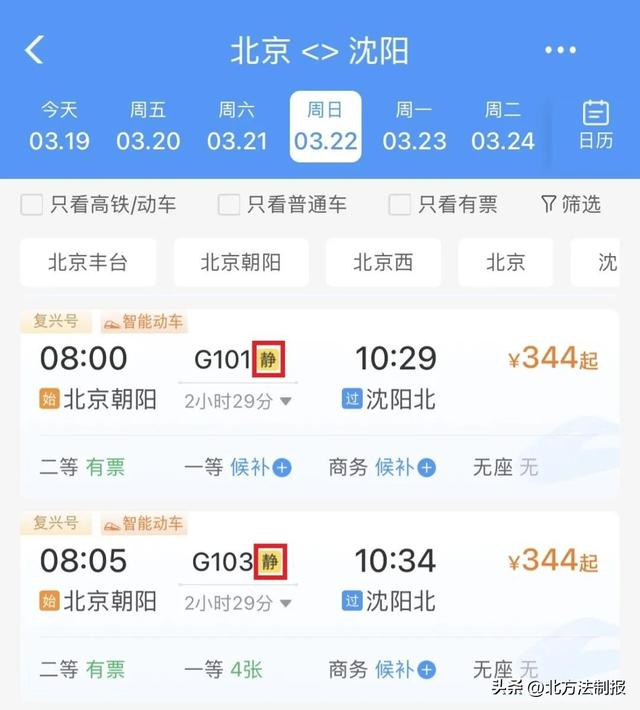 购票界面上标注“静”字的列车