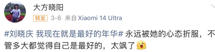 他评价比自己年长29岁的刘晓庆,保养得很好,少女感很足。在跟刘晓庆接触过程中,能从她的语气和微表情中感受到少女感。