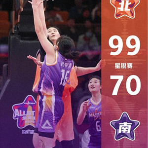 易边再战,北区继续稳扎稳打,第三节以23比16扩大优势。末节比赛,南区放手一搏,但北区始终掌控局面,单节27比24,最终北区星锐队凭借更胜一筹的团队配合,以99比70战胜对手。山西女篮的刘贝凭借23分6板8助攻6抢断的全面数据,荣膺本场星锐赛MVP。张子宇获得20分8篮板。