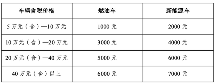 对个人消费者在活动商户购买乘用车新车的,根据车辆类型和含税价格分档补贴,具体标准如下: