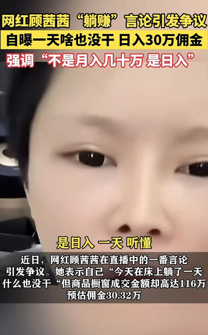 类似的案例并不鲜见,此前还有大批炫富网红被封杀。去年2月,网红顾茜茜在面对网友的讽刺调侃时,直接掏出手机晒出直播收入,仅一周成交额便超1000万,预估佣金近280万。这还不够,她还大方地展示了另一个直播平台的收入,成交金额也高达800多万。同时,顾茜茜还说出了一番“凡尔赛”的言论,表示“什么都不干,橱窗也能月入百万”。