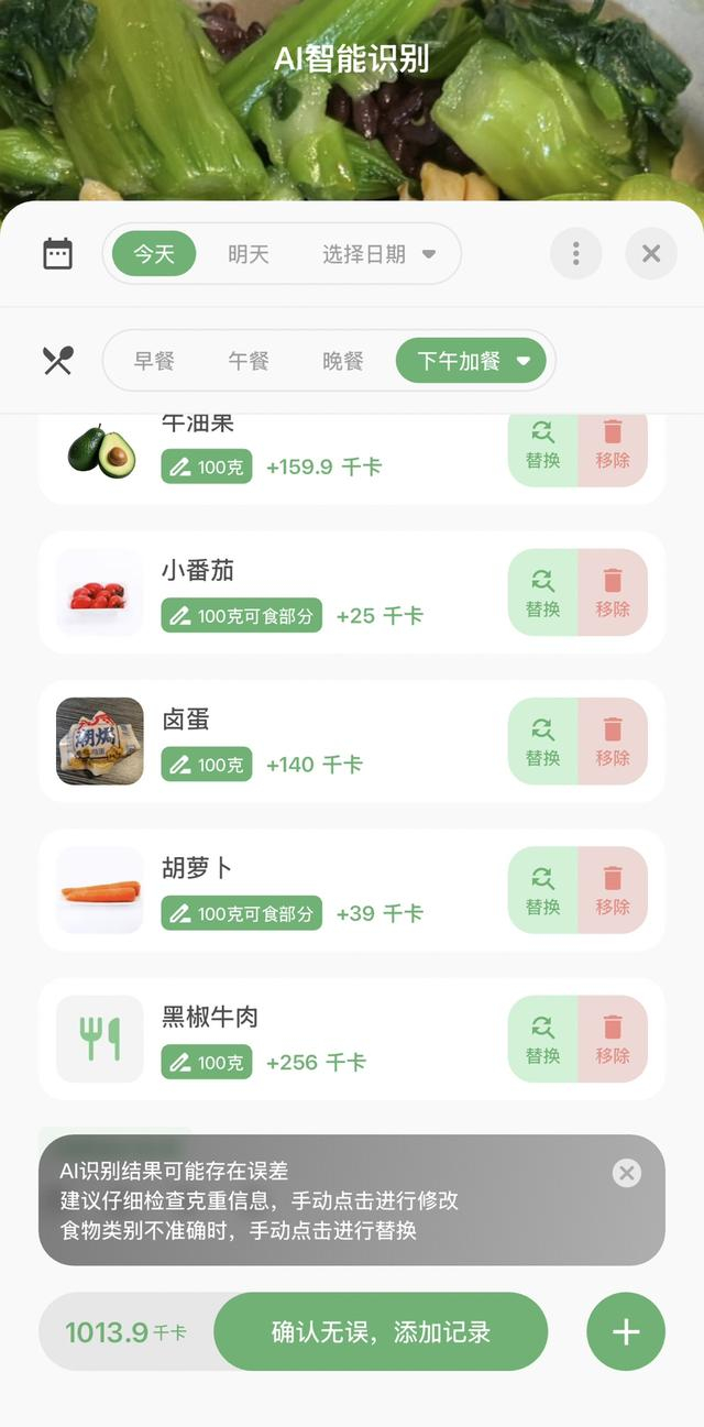 遇到家常菜,各类软件的短板会更明显。上班族沈军从大学开始健身,坚持了十余年,经常需要记录饮食热量。他说:“一开始我也用手机识别,时间长了就发现它们并没有想象中聪明。比如最常见的西红柿炒鸡蛋,家里炒的和外卖比,无论是用油,还是用糖,肯定更克制,也更健康。但在一些软件眼里,西红柿炒鸡蛋这道菜的热量就是220千卡的固定值。”