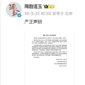 3月21日,《逐玉》盗版全集疑似流出,引发热议。22日上午,《逐玉》官方微博发布严正声明,呼吁抵制盗版内容,将严查盗版来源,保留追究刑事责任和赔偿损失的权利。