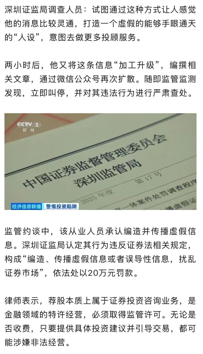 近年来,随着短视频和直播平台快速发展,一些网络博主通过打造其成功投资人设,吸引大量粉丝。近期,一名平台粉丝超百万的所谓“富二代”网红因非法荐股被证券监管和公安部门联合查处。受害人是如何被骗的?案件是怎样一步步被侦破的?