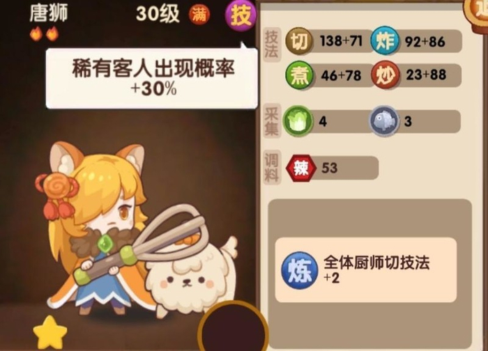 一位贵客厨师的技能为采集暴击,有一定概率额外获得60%的素材,虽机制略显别扭,但实用性很强。该角色尚未绝版,目前仅可通过氪金获取,礼包已多次上架,未来或许会加入卡池,成为常驻抽取角色。