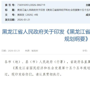3月21日,黑龙江省人民政府印发《黑龙江省国民经济和社会发展第十五个五年规划纲要》。
