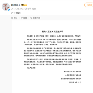 腾讯视频,爱奇艺作为剧集《逐玉》的版权方,为保护《逐玉》版权事宜,声明如下。