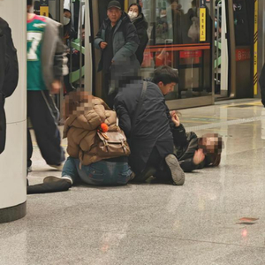 北京地铁房山线东管头南站的站台上,拳头猛烈击打身体的声响,盖过了列车进站的广播,刺破了候车区的平静。三名乘客的争吵骤然升级为殴打,一名男子正在猛烈击打一名女子的头部。