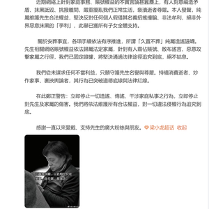 我们从未谋求任何不当利益,只愿守护先生名誉与尊严。持续消费逝者、炒作家事、裹挟舆论者,其行为已突破道德底线与法律红线。