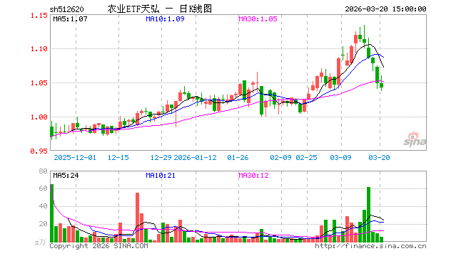 3月20日农业ETF天弘(512620)份额增加100.00万份,最新份额10.55亿份,最新规模10.98亿元