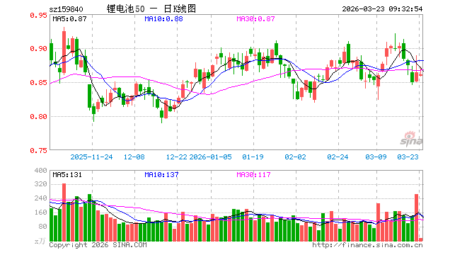 锂电池ETF工银(159840)开盘跌0.58%,重仓股比亚迪涨0.82%,宁德时代涨1.05%