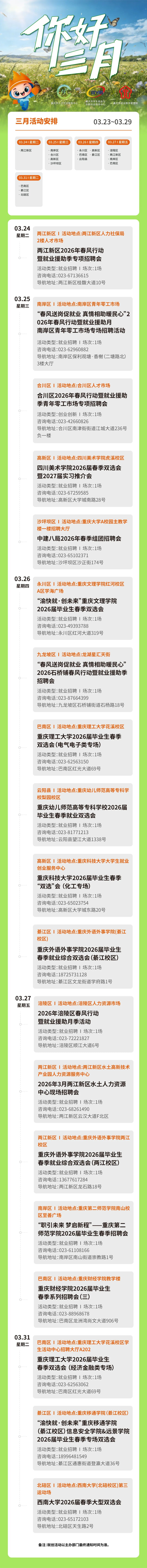 一大波岗位来了!本周19场大学生就业创业活动来了→ 重庆发布 重庆市人民政府新闻办公室官方账号 03.2311:04 关注 本周大学生就业创业活动全面启动全市共有19场大学生就业创业活动包括四川美术学院等多所高校的春季双选会一起来看