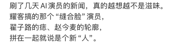 有网友评论,“很逼真,至少我看不出来是AI”“有的演得比真人还好”。但整体来看,AI演员还是遭到了绝大部分网友的抵制,或者说批评居多。