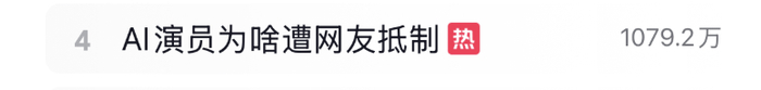 近日,“AI演员为啥遭网友抵制”等相关话题登上多平台热搜榜,争议持续发酵。