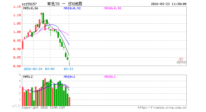有色金属ETF天弘(159157)跌2.99%,半日成交额1.15亿元